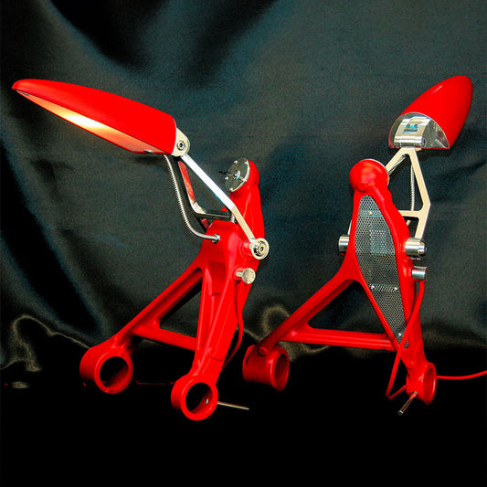 Une lampe Ferrari recyclée en objet d'art industriel vintage