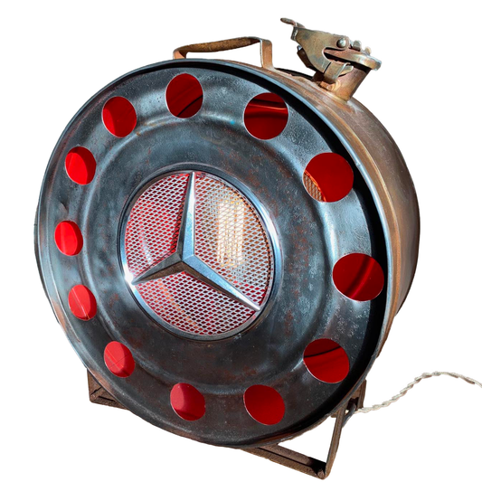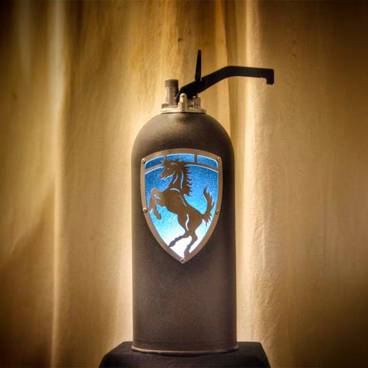 Offrez-vous une œuvre d'art lumineuse unique : une lampe vintage upcyclée à partir d'un extincteur automobile arborant fièrement le légendaire Rosso Corsa et l'emblématique Cavallino Rampante. Un objet d'art lumineux inspiré par l'univers de la Scuderia Ferrari et de l'écurie de course de Maranello, conçu pour sublimer vos intérieurs avec un look rétro-industriel au style racing affirmé.