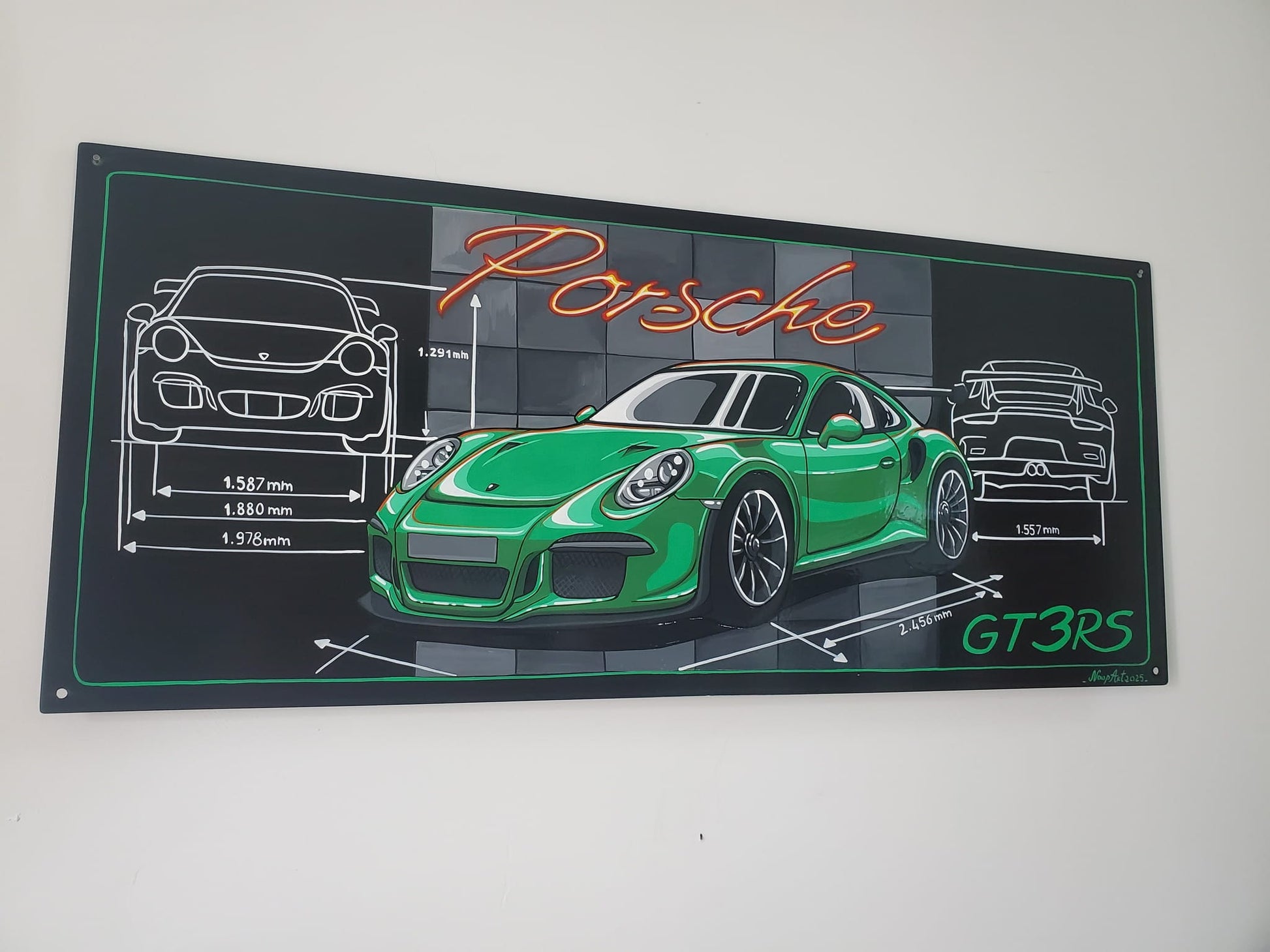 This original one-of-one automotive art decoration (1/1) transforms a set of custom metal plates into bold, collectible design automobile retro pieces. Each plate is carefully prepared, hand-finished, and customized with legendary graphics such as Ferrari, Porsche, blending racing heritage with contemporary artistic expression.