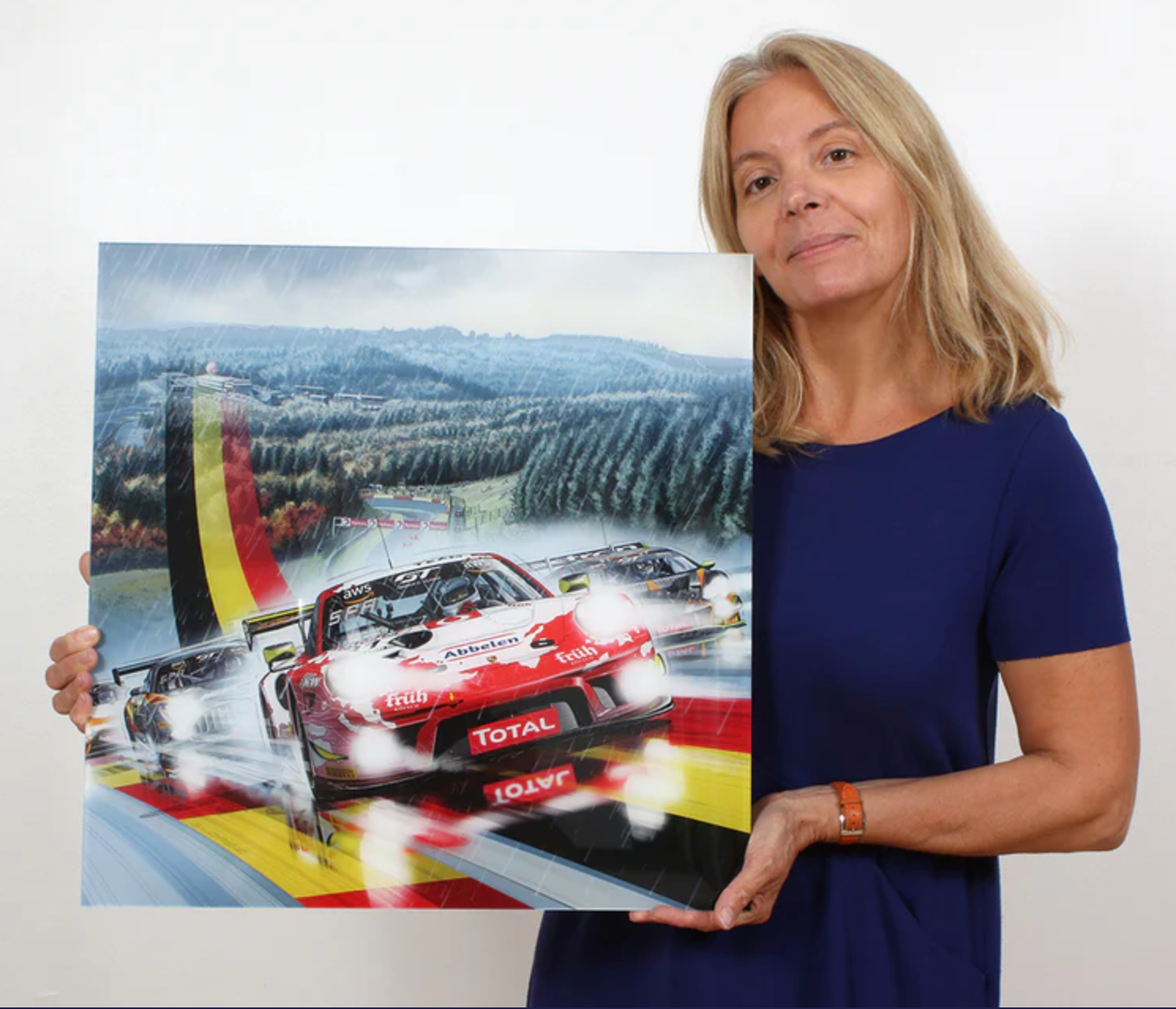 Strongly influenced by his work on this comic strip and passionate about the Porsche 917, which he considers to be the essence of motor racing due to its worldwide renown, the artist has captured the confrontation between the Porsche 917 and the Ford GT40.