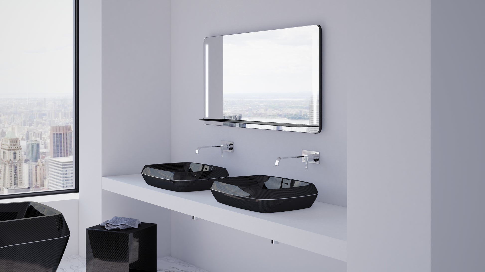 - Mirror : High quality mirror with integrated carbon fiber shelf, led lighting automatic heater anti-steamy.