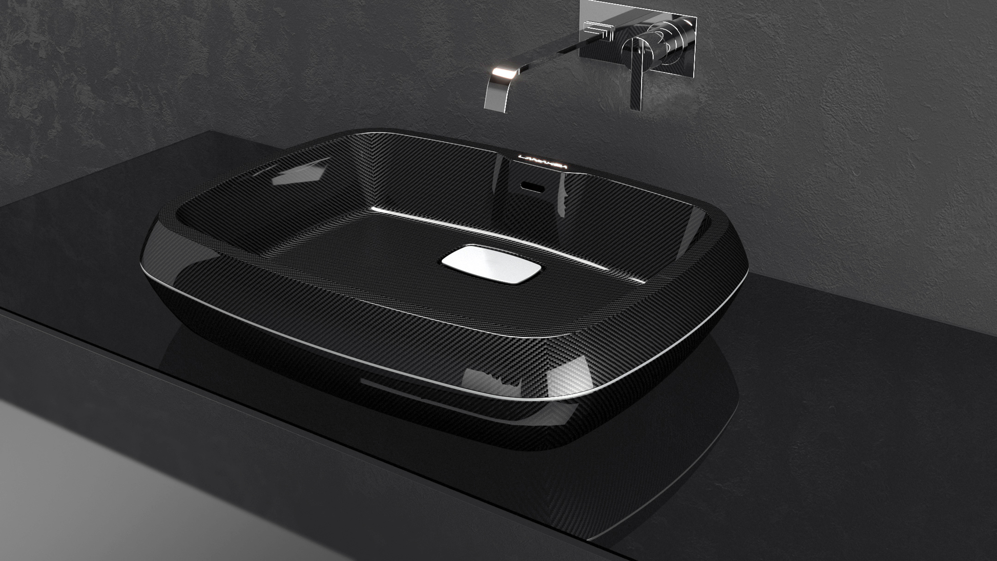 - Sink integrated in carbon countertop : Integrated sink and countertop made of carbon fiber. Fittings in machined aluminium.